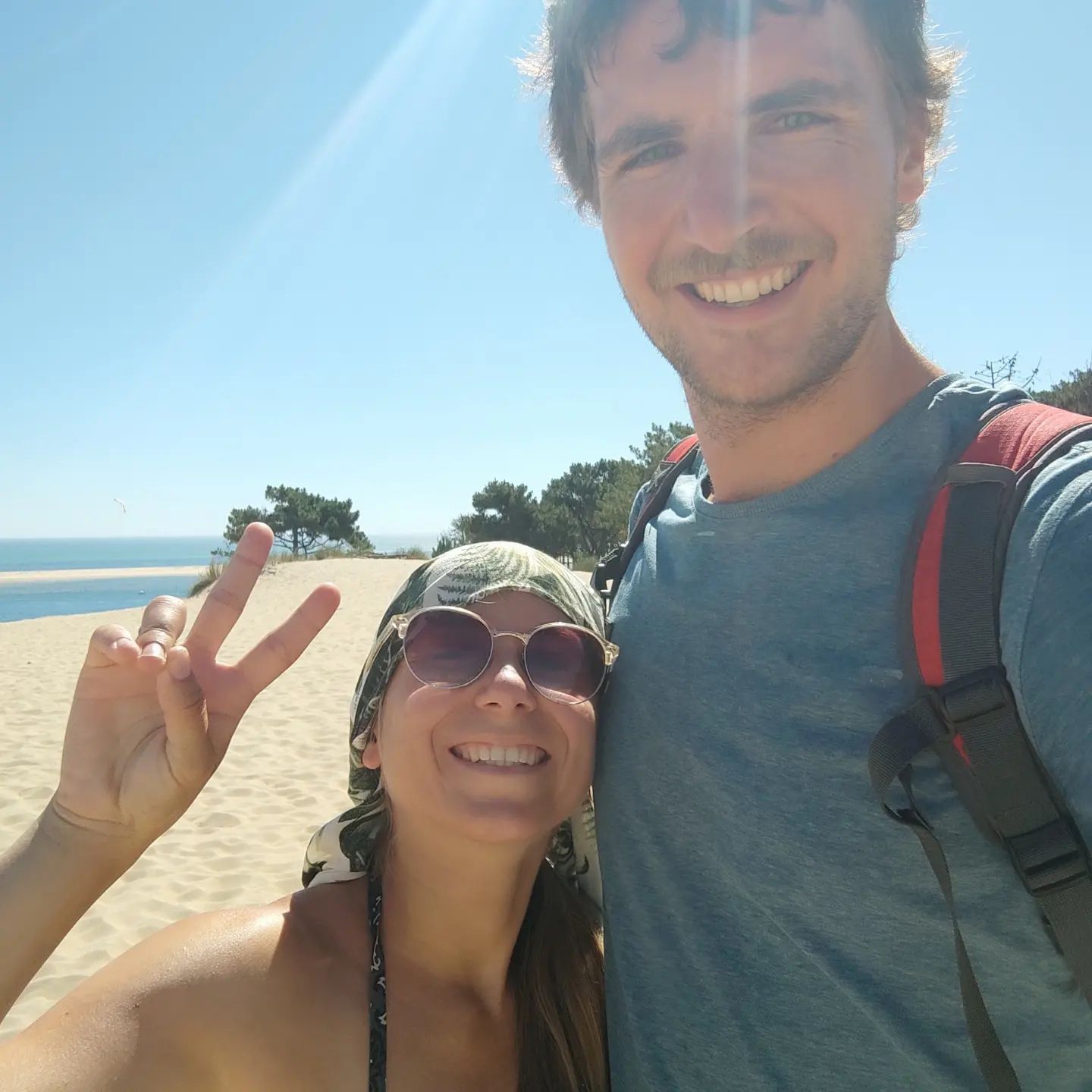 Also zurück zu praktischeren Dingen: Momentan sind wir im Bassin D'Archachon. Aus der Not geboren, weil wir uns einen Stellplatz gesucht hatten, an dem leider Nachtmarkt war, landeten wir total platt und übermüdet in Le Teich. Eine dieser angenehmen Reiseüberraschungen: hier gab es Duschen und sogar WLAN. Ich wollte schon die ganze Zeit mit einem Boot fahren und hier wurden wir auf eine Bootstour eingeladen im Gegenzug dafür, dass wir einer Frau dabei Gesellschaft leisteten. Sie war dankbar, dass ich fuhr, weil sie eine schlimme Nacht hinter sich hatte und von Kopfschmerzen geplagt wurde. Win-win für alle. Nach 3 Tagen in Lei Teich zog es uns zu den berühmten Wanderdünen von Pilat. Das ist mal eine wahnsinnige Kulisse. Umringt von Pinienwäldern ragt dieses Naturschauspiel über allem. Dort hoch zu klettern bei 35° ist ein echter Kampf. Alle paar Meter muss man stehen bleiben und die Füße im Sand vergraben, damit sie nicht verbrennen. Aber der Ausblick lohnt sich. Diese Tage waren magisch.