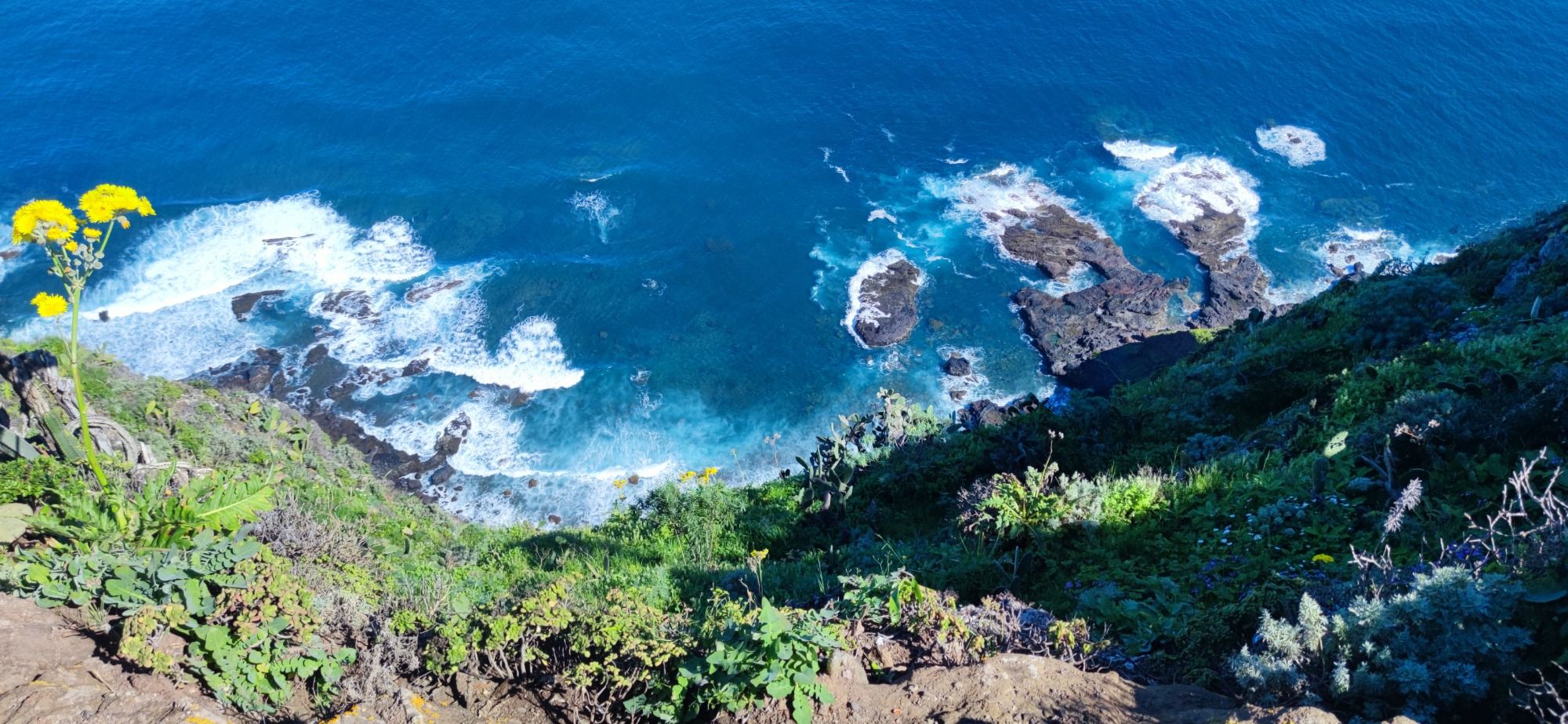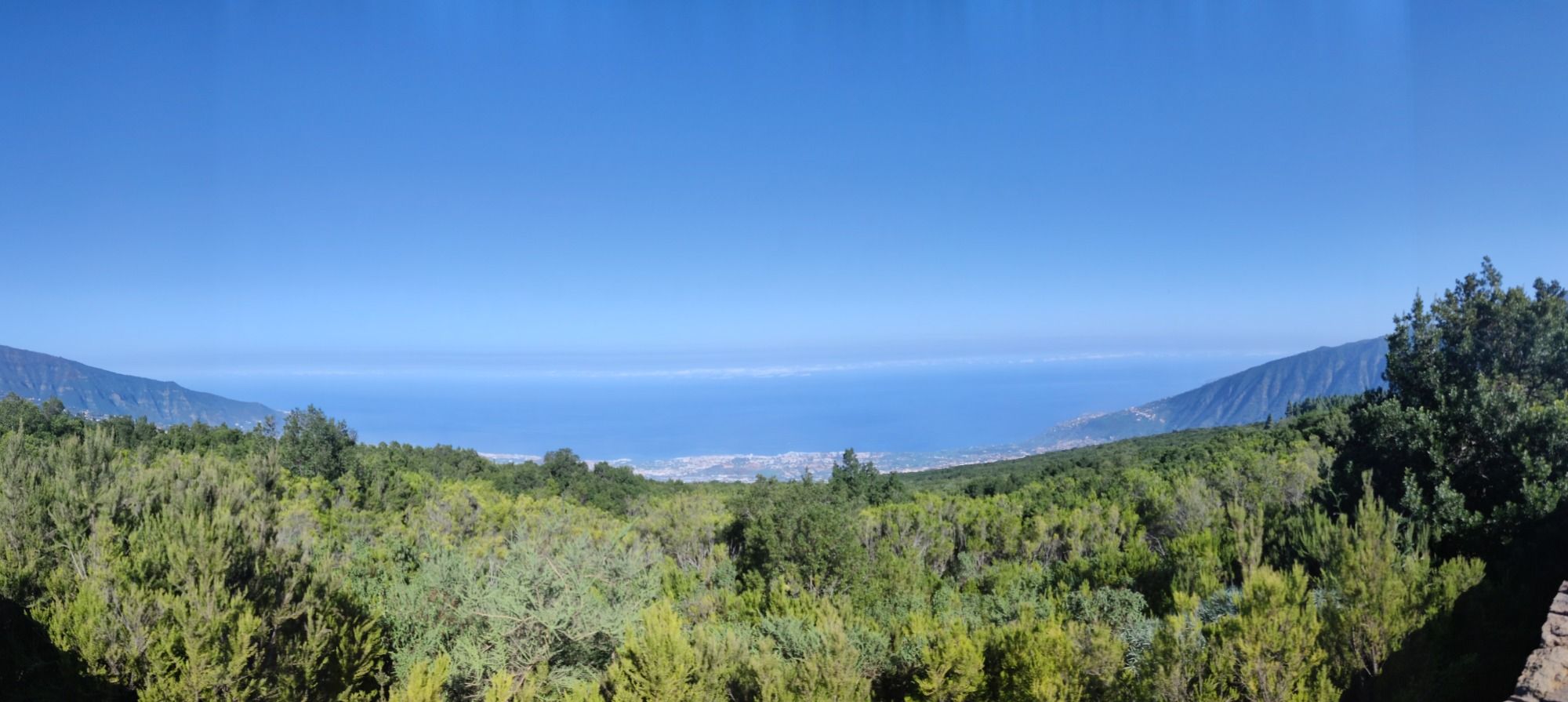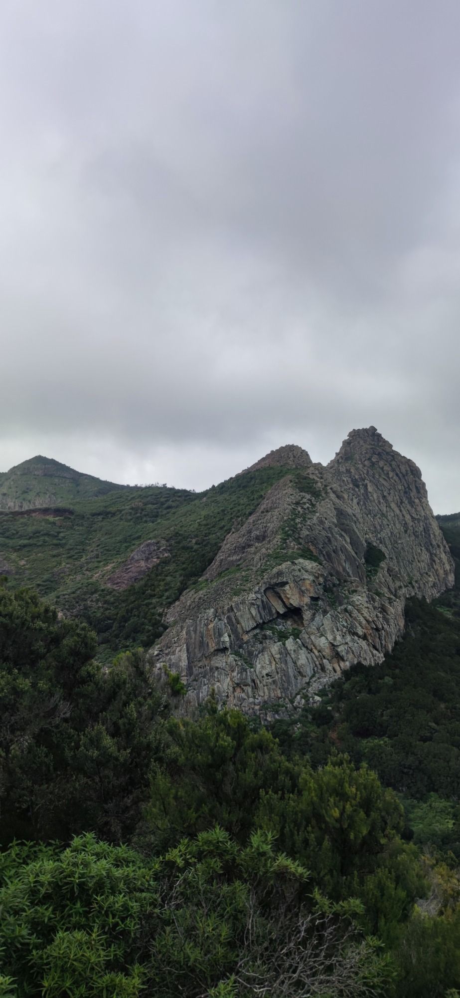 Warum ist die Insel eigentlich so grün? Unten an der Küste sind die Felsen schwarz und schroff. Das Vulkangestein prägt das Landschaftsbild. Dort wirkt die Insel sehr abweisend. Das war auch mein erster Eindruck, bis auf das wahnsinnige Blau des Meeres konnte ich der Insel anfangs nichts abgewinnen. Doch auf den zweiten Blick zeigt die Insel ein anderes Bild, weiter oben grünt es. Die Hänge erstrahlen in einem satten Grün. Es gibt Bäume, Moose, Blumen, meterhohe Sukkulenten und Kakteen. Das liegt vor allem an den Wolken. Diese schweben über den Atlantik und wenn sie hier auf die mehrere tausend Meter hohen Vulkangipfel treffen bleiben sie hängen. Oftmals regnen sie gar nicht ab. Aber die Pflanzen haben sich angepasst und Methoden entwickelt, wie sie Wassertröpfchen aus der Wolke ziehen können. Diese Methode heißt Wolken-Melken. Die Kanarische Kiefer hat beispielweise eine Nadel pro Nadelansatz mehr als ihre Verwandten, damit kann sie mehr Wasser auffangen. Das Wasser fällt auf den Boden. So kommt es der Kiefer und der gesamten Vegetation und den Tieren zu Gute. An den Baumrinden wachsen Flechten und Moose, welche von Tieren gegessen werden können aber den kleinsten Artgenossen auch Unterschlupf vor Fressfeinden bieten. Die üppige grüne Landschaft, die dadurch entsteht, können wir während unserer Wanderung durch das Teno-Gebirge bestaunen. Das Gebirge bildet den Nord-Westen der Insel. Dieser bis zu 1300 Meter hohe Teil der Insel ist 17 Millionen Jahre alt und entstand als eigenständige Insel. Erst im späteren Verlauf der Inselgeschichte verschmolz es mit Teneriffa. Es zeichnet sich durch seine steilen Hänge aus, im Westen endet es als die beeindruckende Steilküste Los Gigantes ins Meer. Auf unserem Weg von El Palmar nach Teno Alto können wir das faszinierende Grün, die Wolken, die Berggipfel, die steilen Anstiege und die Taktiken der Pflanzen hautnah erleben.