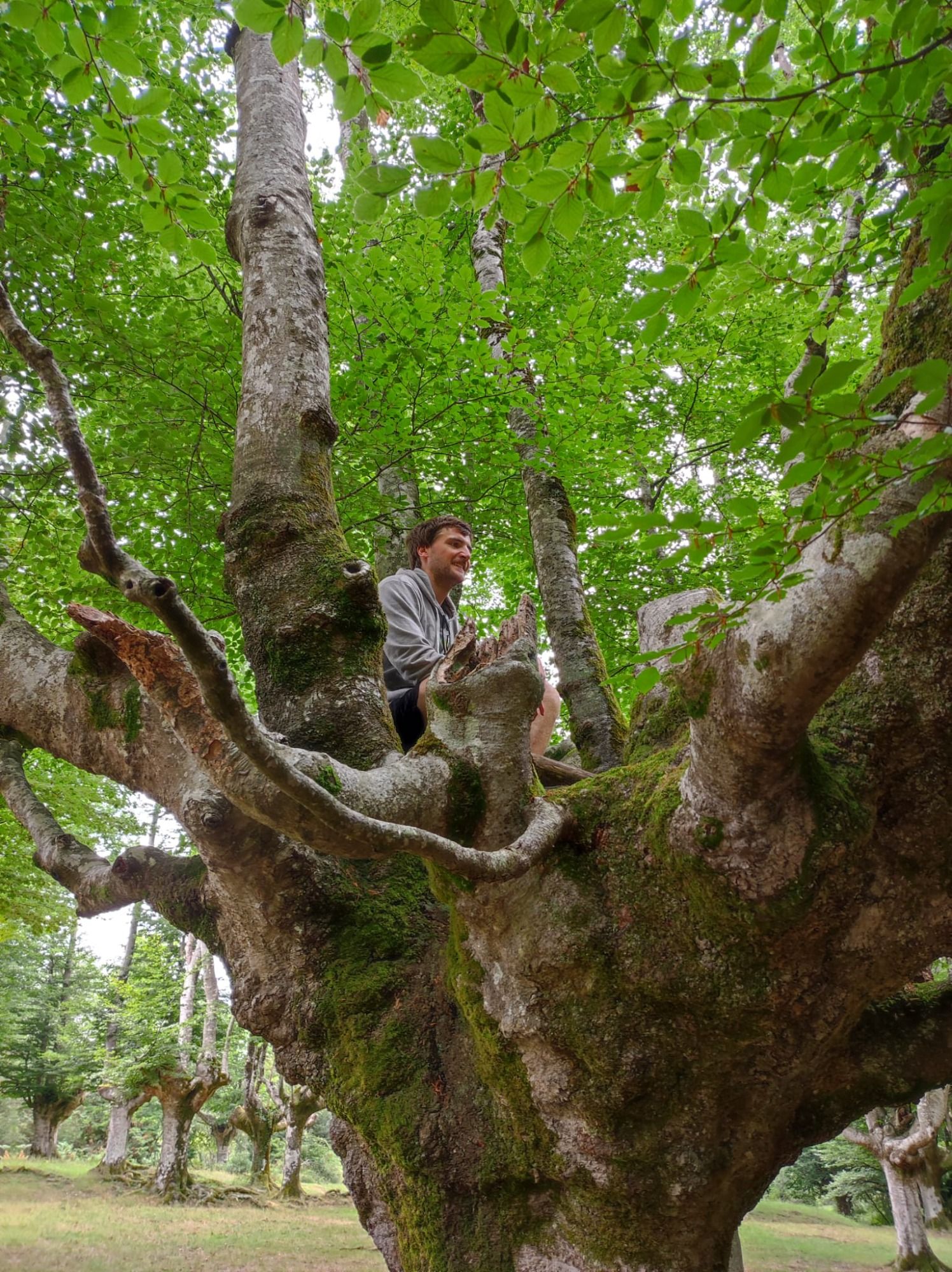 Der Buchenwald Otzaretta hat für den ausgetrockneten Goiuri-Wasserfall entschuldigt. Diesen Wald fand ich bei meiner Recherche nach den schönsten Wäldern Europas. Er ist zwar nicht besonders groß aber dafür umso schöner. Die Buchen mit ihrem mysteriösem Wuchs verleihen dem Wald etwas märchenhaftes. Sie sahen so lebendig aus mit ihrem Wurzelwerk, das sich entlang des Bodens und der Bachmündung schlängelte. Dazu kam das Moos, was manche Bäume vom Boden bis in die Krone bedeckte. Ich hatte das Gefühl, die Bäume fangen gleich an, sich zu bewegen wie die Ents bei Herr der Ringe. Ein Gedanke ging mir in diesem Wald durch den Kopf: wir Menschen sind die einzigen Lebewesen, die diesen Bäumen mehr Beachtung schenken als dem Rest des Waldes. Die Wildpferde zum Beispiel machen da keinen Unterschied. Wir Menschen haben schon einen Sinn für Schönheit. Oder liegt es nur daran, dass wir es darauf anlegen, etwas Besonderes in Dingen sehen zu wollen? Da bin ich zu keinem Schluss gelangt. Auf jeden Fall gefällt mir dieser Wald. Und auf der Wanderung Wildpferden mit Fohlen und wilden Kühen mit Kälbern zu begegnen, das hat mich glücklich gemacht.